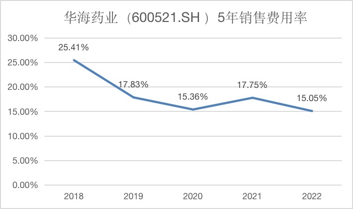 根据公开数据,华海药业在2020年-2022年销售用度鉴识为9.963亿元、11.79亿元、12.44亿元,销售用度率鉴识为15.36%、17.75%、15.05%,比照生物医药行业全体平均值24.42%与中位数22.19%偏激他同行可比公司,华海药业的销售用度防守在较低水平。
